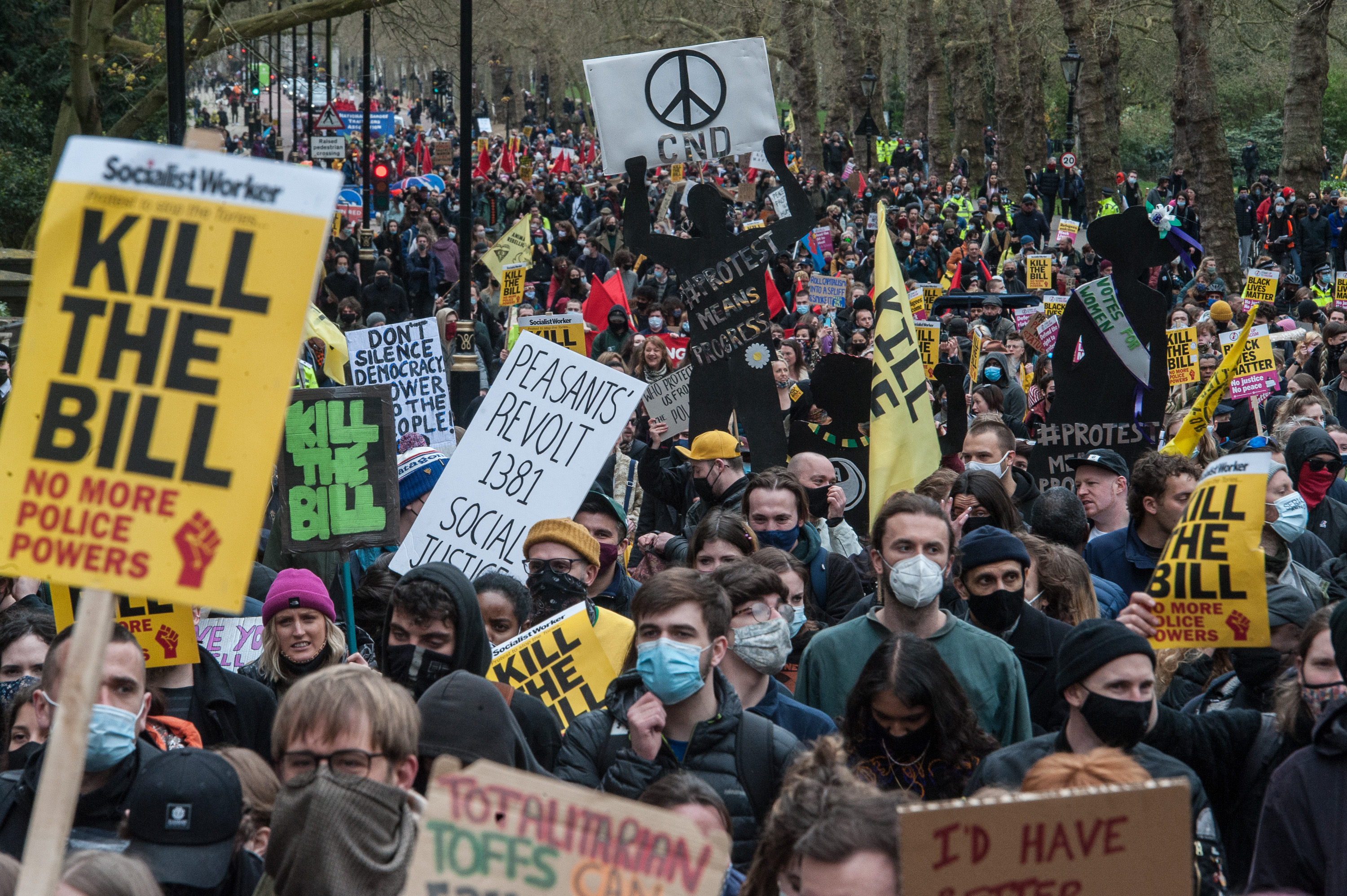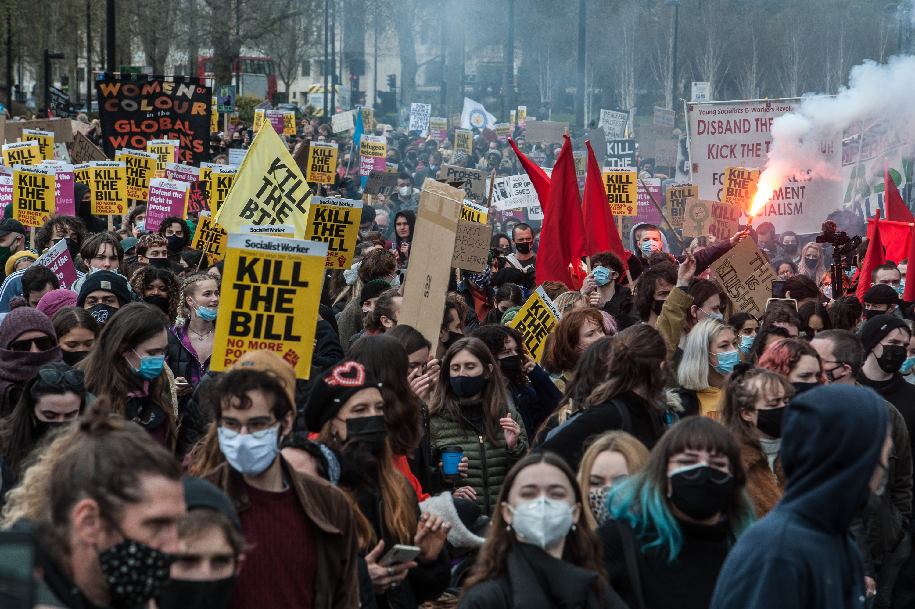 The demonstrators were upset at the Conservative government's Police, Crime, Sentencing and Courts Bill, which is currently going through parliament.