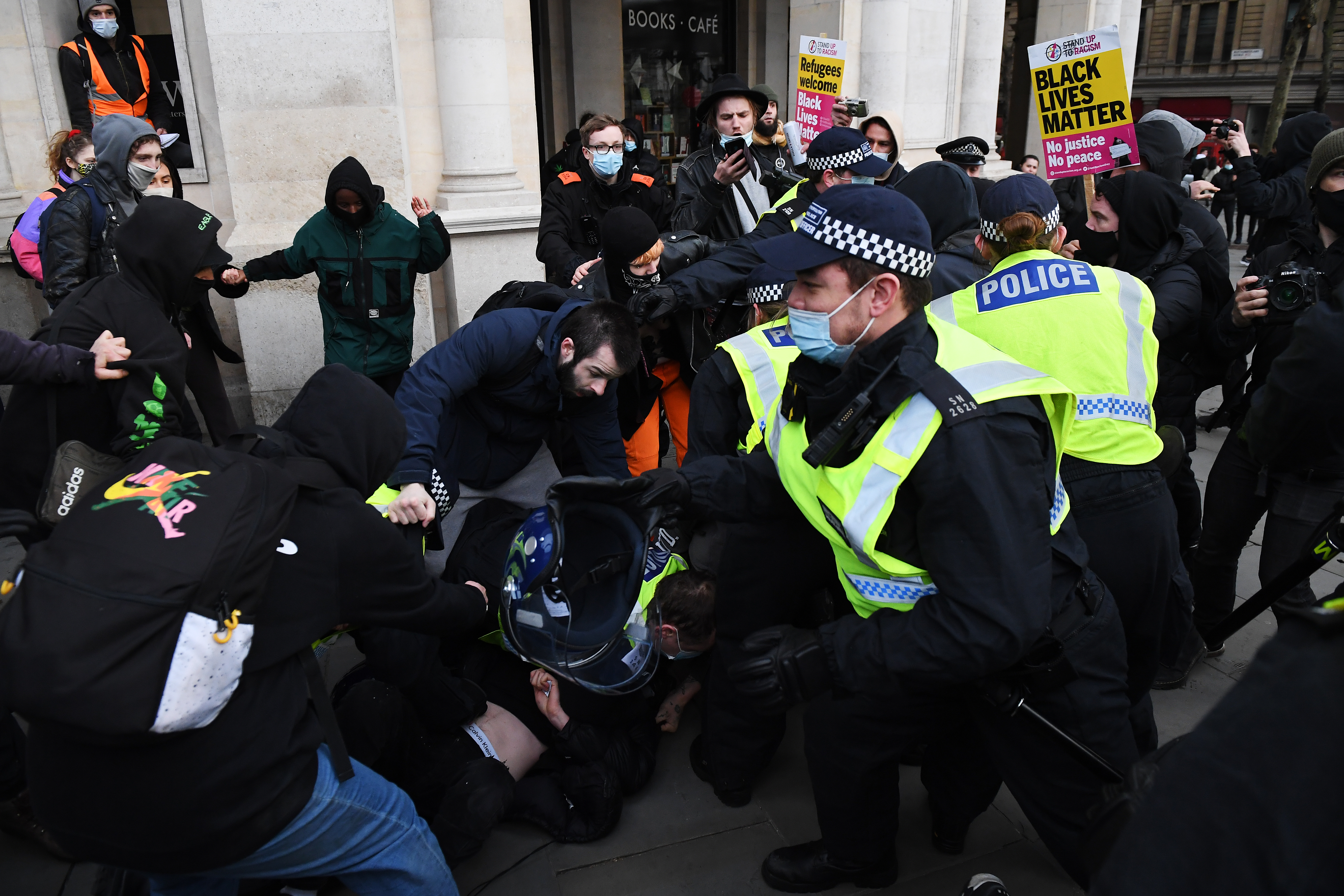 A recent protest against the new legislation in Bristol, southwest England, descended into widespread violence that saw police officers injured, a police station damaged and police vehicles torched.