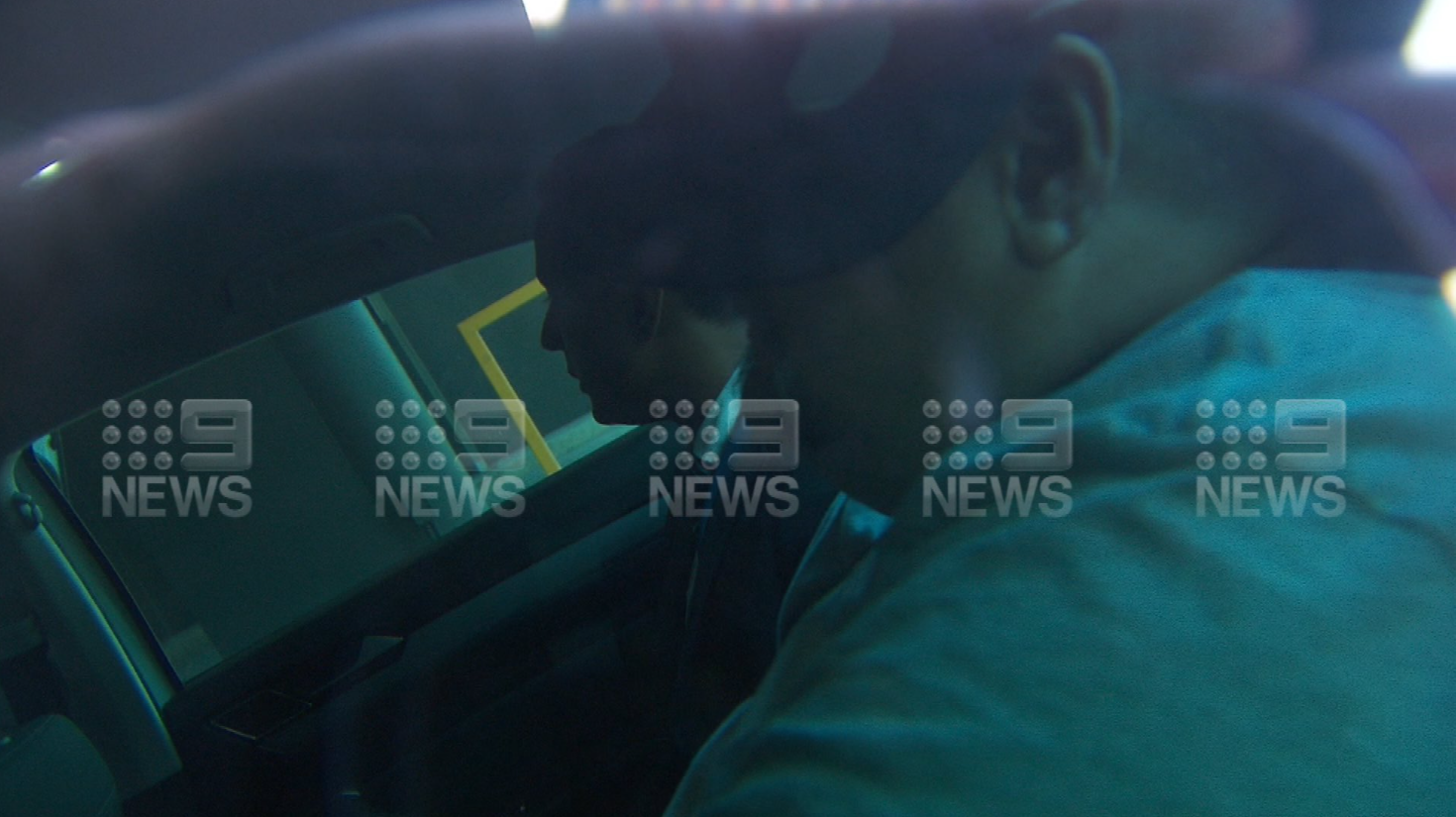 https://twitter.com/NearyTy_9/status/1379963430262644739Exclusive 9News images captured the man covering half of his face with a baseball cap as he sat in the back of a detective car while being driven to police headquarters.