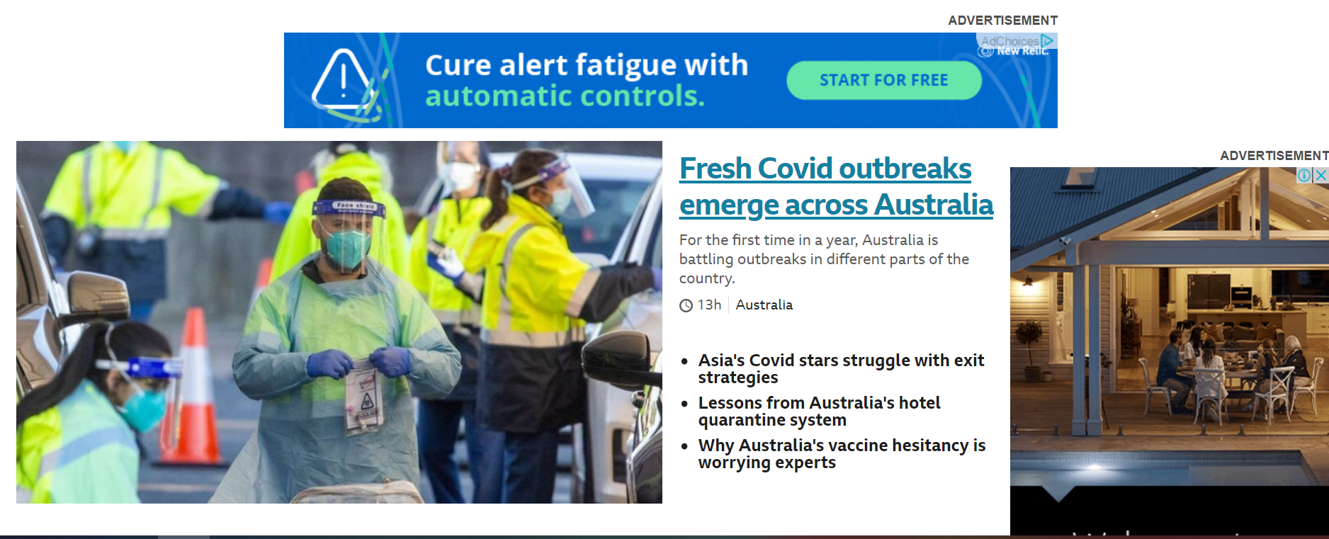 Meanwhile the BBC reported on Australia's "vaccine hesitancy", quoting a survey which showed that up to a third of Australians were worried about getting the jab.
