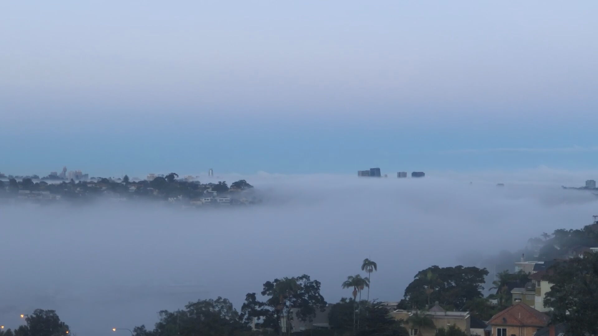 A second city has disappeared below the clouds this morning with Brisbane also blanketed in fog.