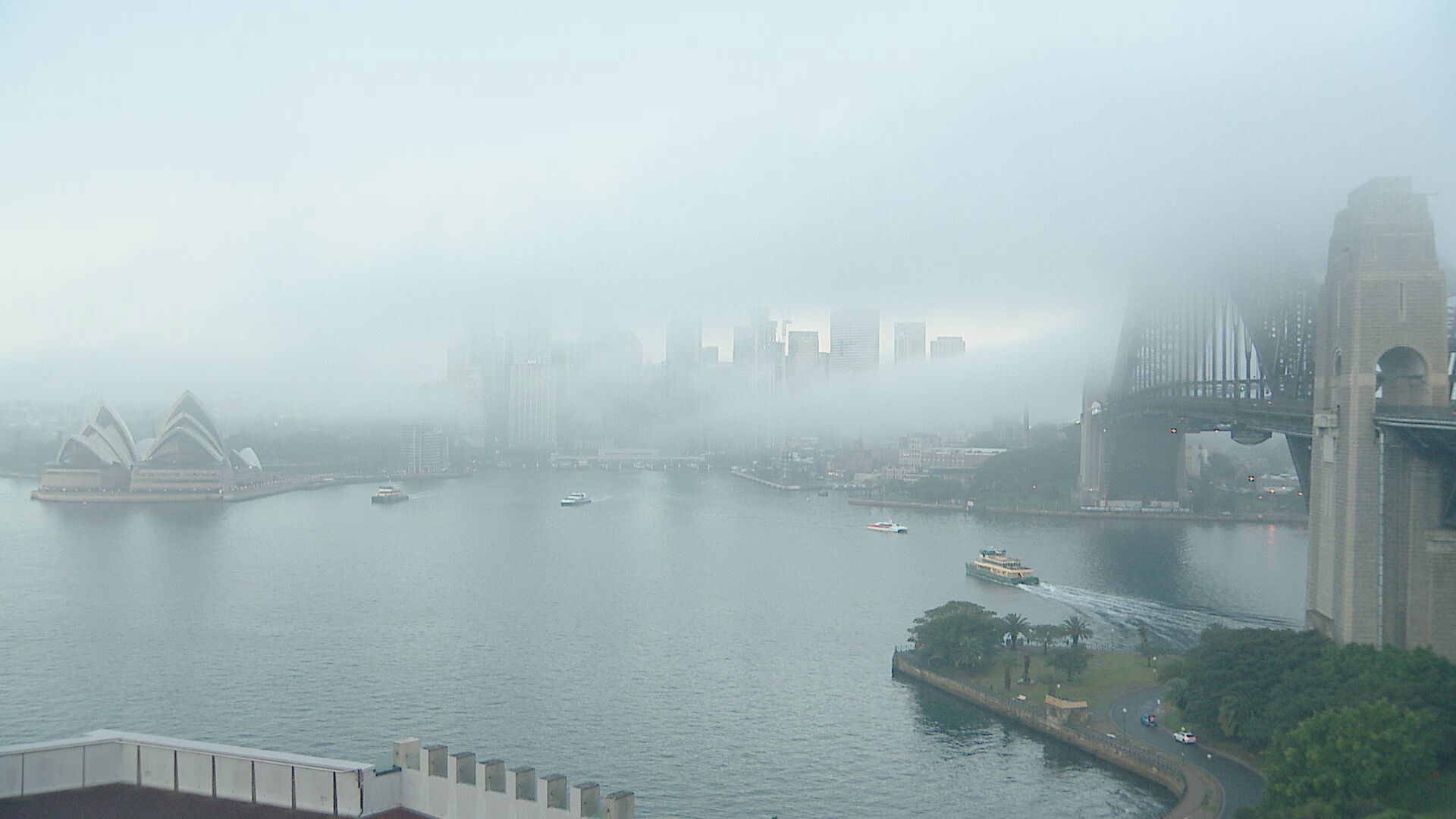 Sydney has disappeared behind a soupy layer of fog for the third consecutive day with more cold and wet weather on the way for the state.
