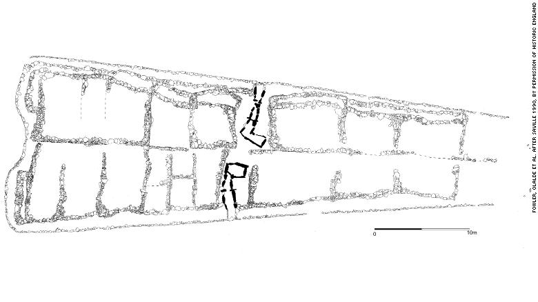 Researchers found people were buried in the two L-shaped chambered areas at Hazleton North. The chambers were located north and south of the centre or "spine" of the structure.