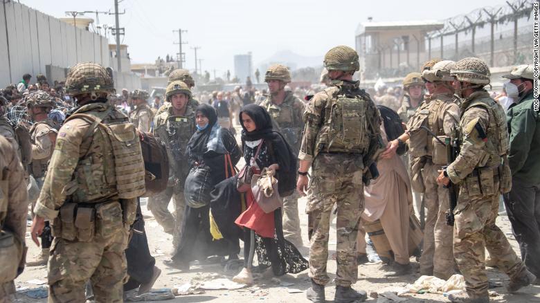 Just at that moment, Taliban forces pushed the crowd back and it would be another half an hour before Ahmadi, his wife and their four other children were able to get inside.
