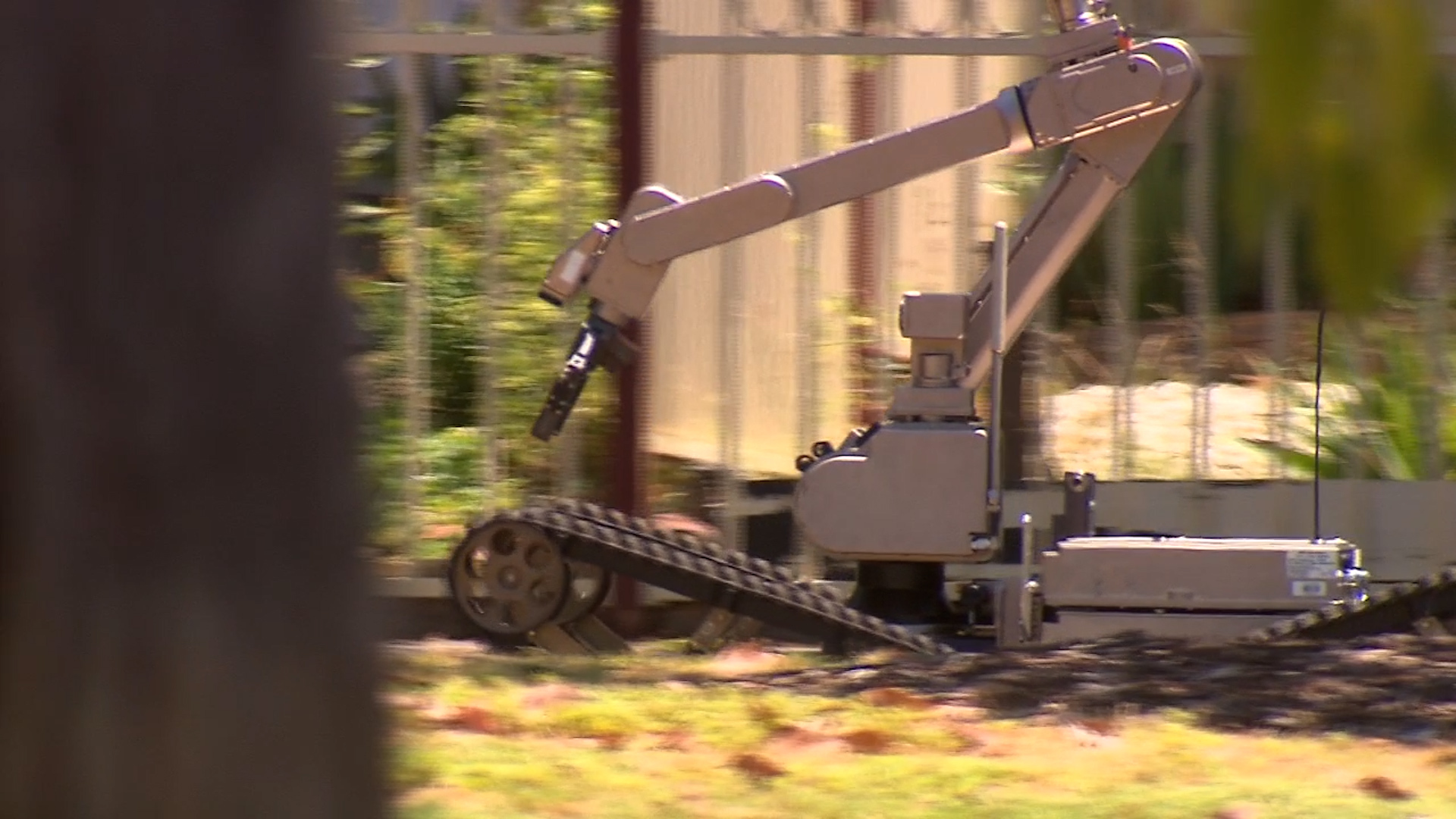 The bomb squad has been on scene at the home throughout the day with the help of a robot.