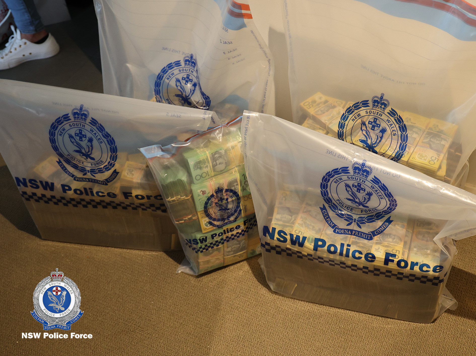 Police have charged four people and seized more than $8 million in cash following investigations into an alleged money laundering syndicate involved in supplying illicit drugs across Sydney.