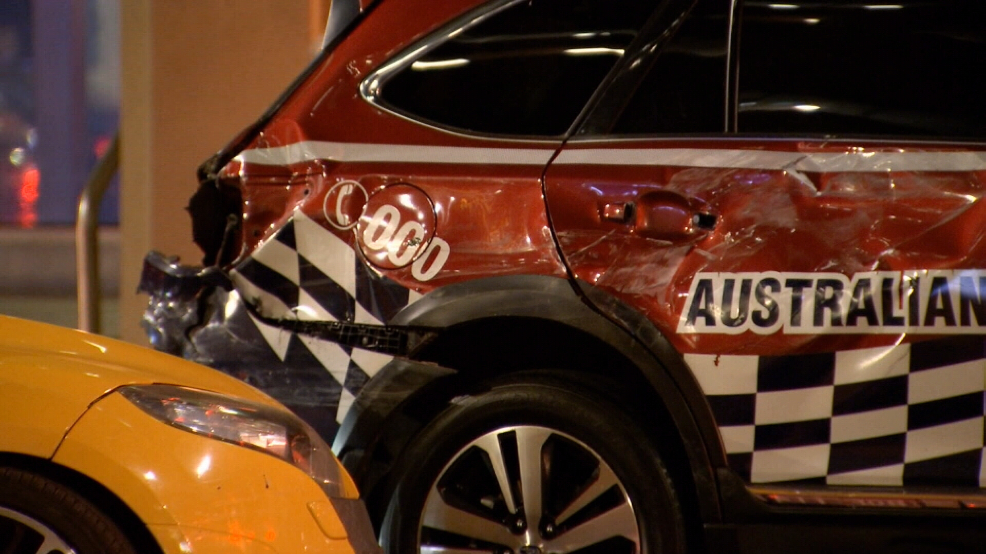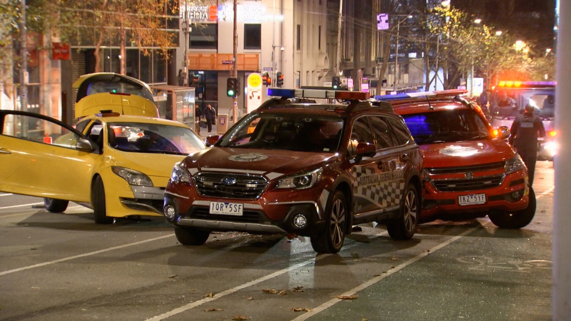 Another two police cars took a hit about 10pm yesterday when a driver slammed into the parked Australian Federal Police cars on LaTrobe Street in Melbourne CBD.