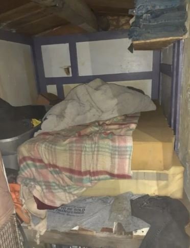The structure is about six feet deep and includes multiple rooms, a propane hookup and a heater. It's obscured beneath heavy layers of dirt and layered tree branches.