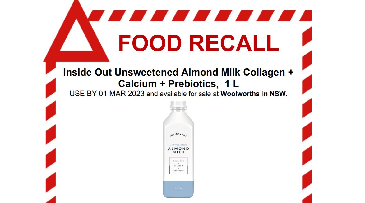 Inside Out almond milk, which is sold at Woolworths, is being removed from stores over fears bottles contain botulinum, a neurotoxin capable of causing disease.