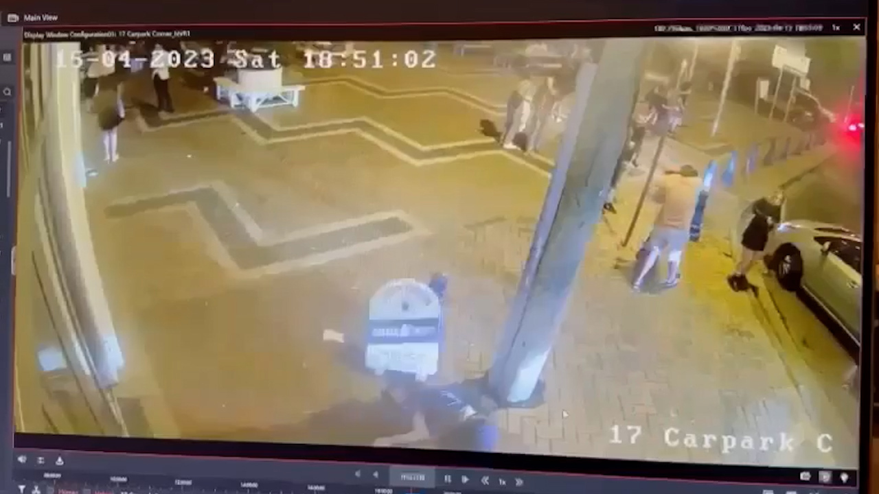 Harrowing CCTV footage has captured the moment a man who was refused entry to a beachside Sydney venue plunged more than three metres during a failed attempt to climb inside.