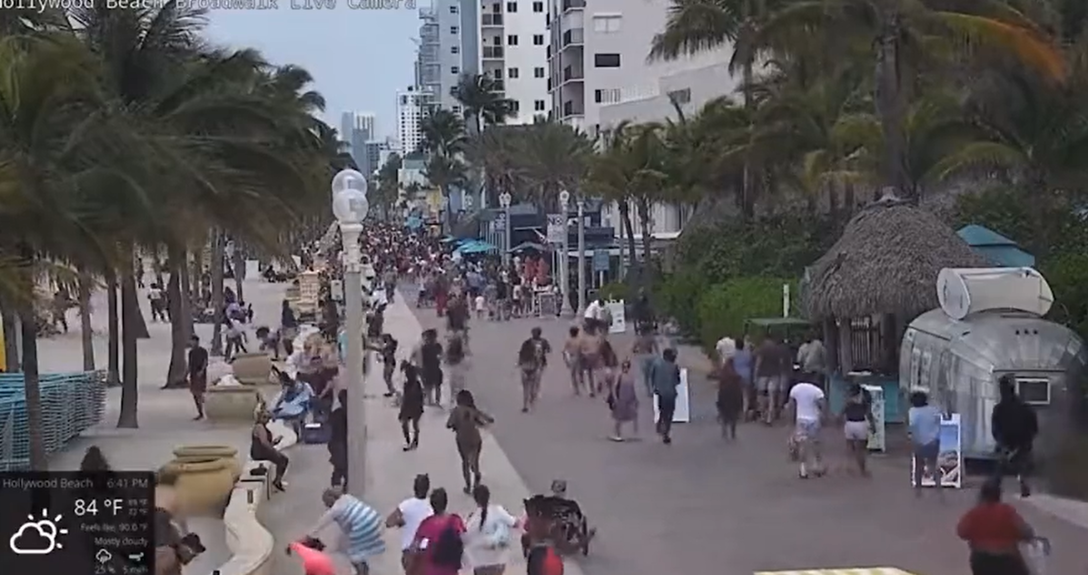 A live camera feed of the boardwalk showed dozens of terrified beachgoers running from the scene.