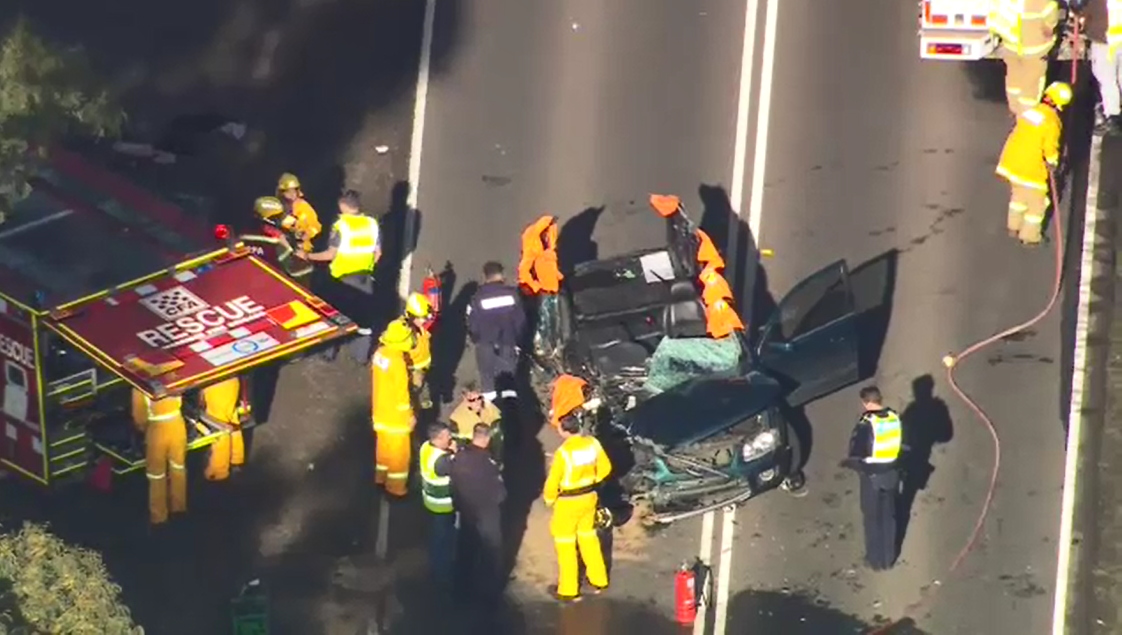 The 49-year-old Werribee woman was trapped in her car after the crash on the Princes Highway in Werribee just before 9am.