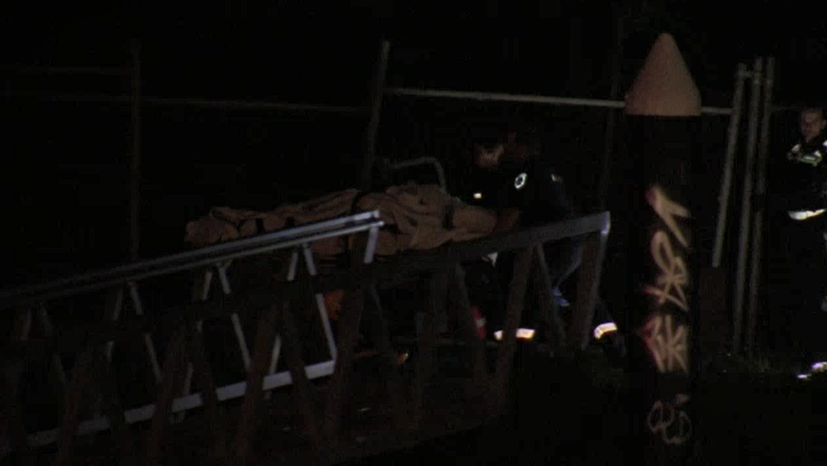 Officers had to climb into the water to get the woman, who was taken to hospital for pre-existing injuries.