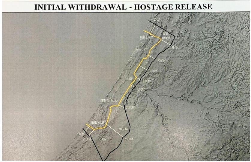 Trump on Saturday afternoon (Sunday morning AEDT) announced that following negotiations, Israel has agreed to an "initial withdrawal line" that he said has also been shared with Hamas.